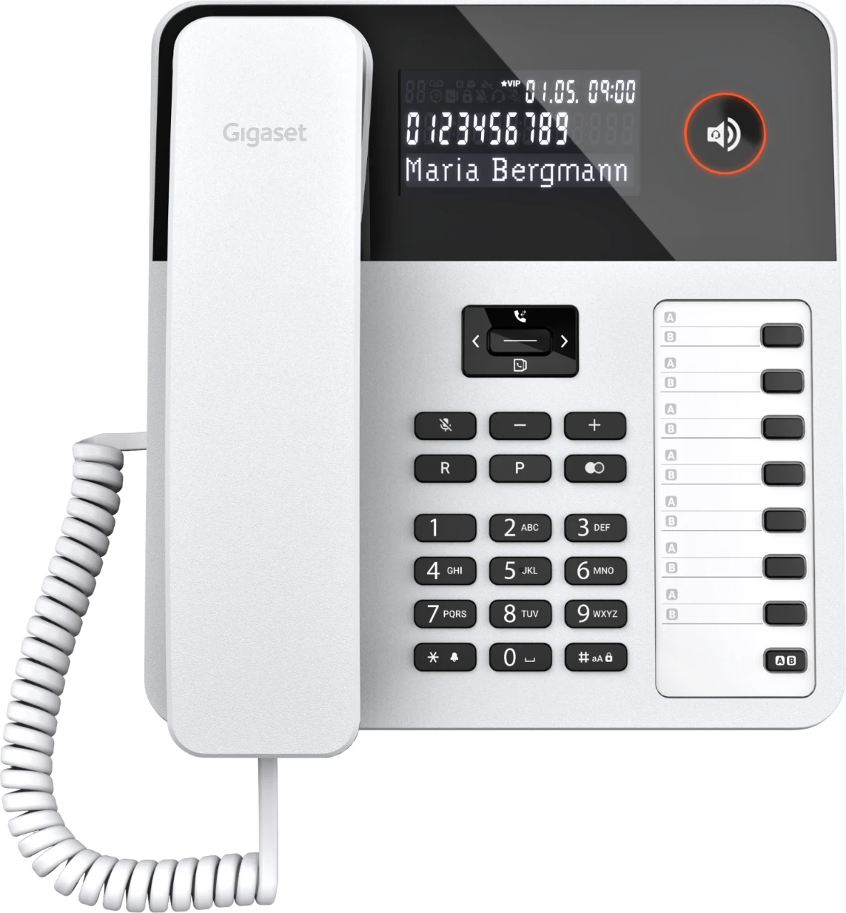 Das einfache Wählen einer Telefonnummer ist der Auftakt zu einem angenehmen Telefonerlebnis. Genau deswegen macht die ergonomische Tastatur des Großtastentelefons Gigaset E290 die Bedienung jetzt so komfortabel wie möglich: Große, beleuchtete sowie deutlich beschriftete Tasten sorgen für gute Lesbarkeit. Besonders wichtige Kontakte, zum Beispiel für den Notfall, können Sie auf einer der beiden Zielwahltasten A / B einspeichern. Wenn von dem Telefon aus nur eine Rufnummer angewählt werden soll, ist die Direktruf-Funktion hilfreich. In schwierigen Situationen reicht das Drücken einer beliebigen Taste um eine vorab hinterlegte Telefonnummer zu aktivieren.