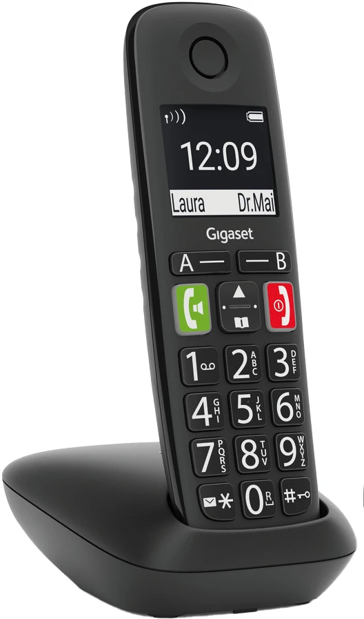 Das einfache Wählen einer Telefonnummer ist der Auftakt zu einem angenehmen Telefonerlebnis. Genau deswegen macht die ergonomische Tastatur des Großtastentelefons Gigaset E290 die Bedienung jetzt so komfortabel wie möglich: Große, beleuchtete sowie deutlich beschriftete Tasten sorgen für gute Lesbarkeit. Besonders wichtige Kontakte, zum Beispiel für den Notfall, können Sie auf einer der beiden Zielwahltasten A / B einspeichern. Wenn von dem Telefon aus nur eine Rufnummer angewählt werden soll, ist die Direktruf-Funktion hilfreich. In schwierigen Situationen reicht das Drücken einer beliebigen Taste um eine vorab hinterlegte Telefonnummer zu aktivieren.